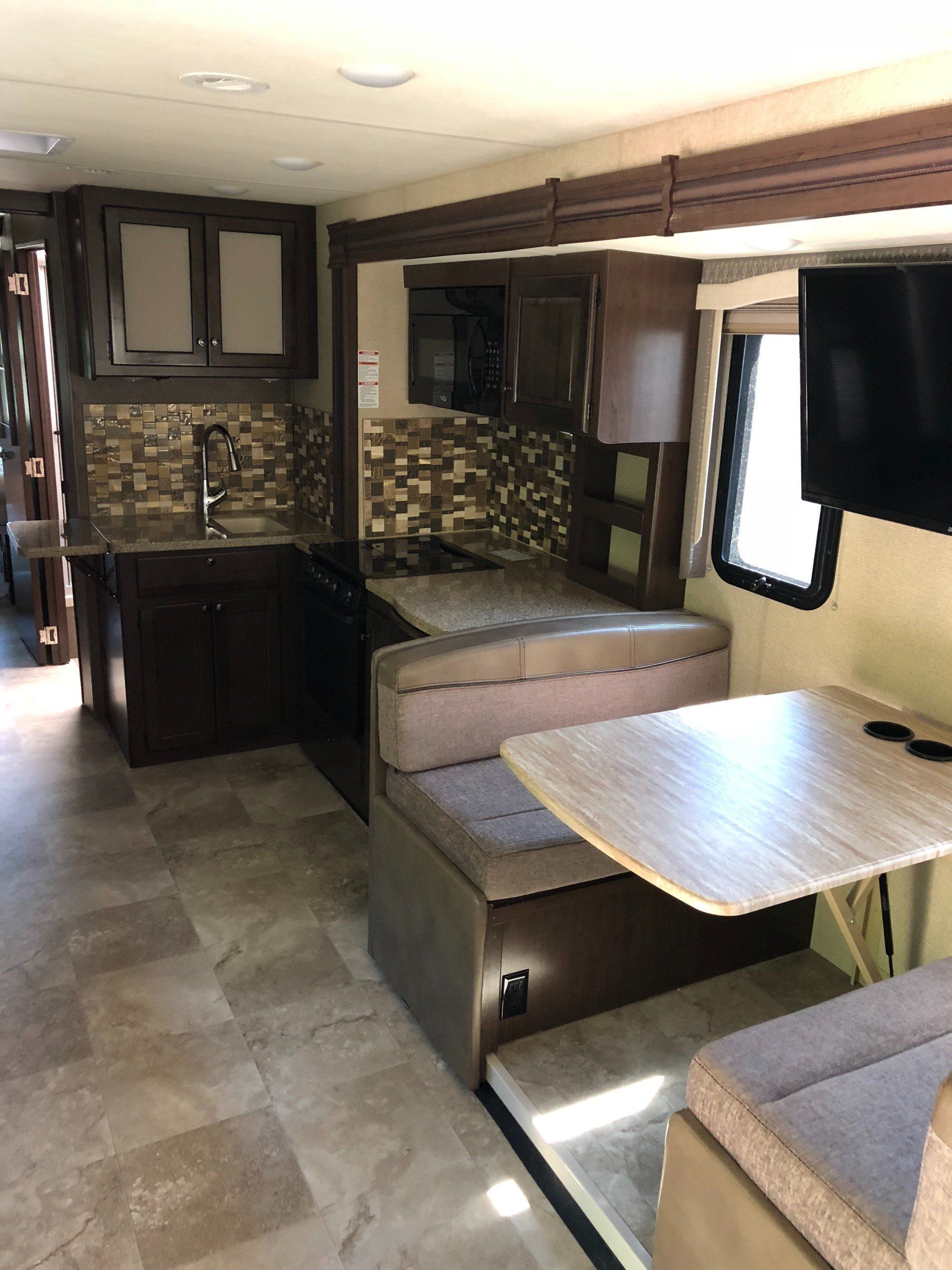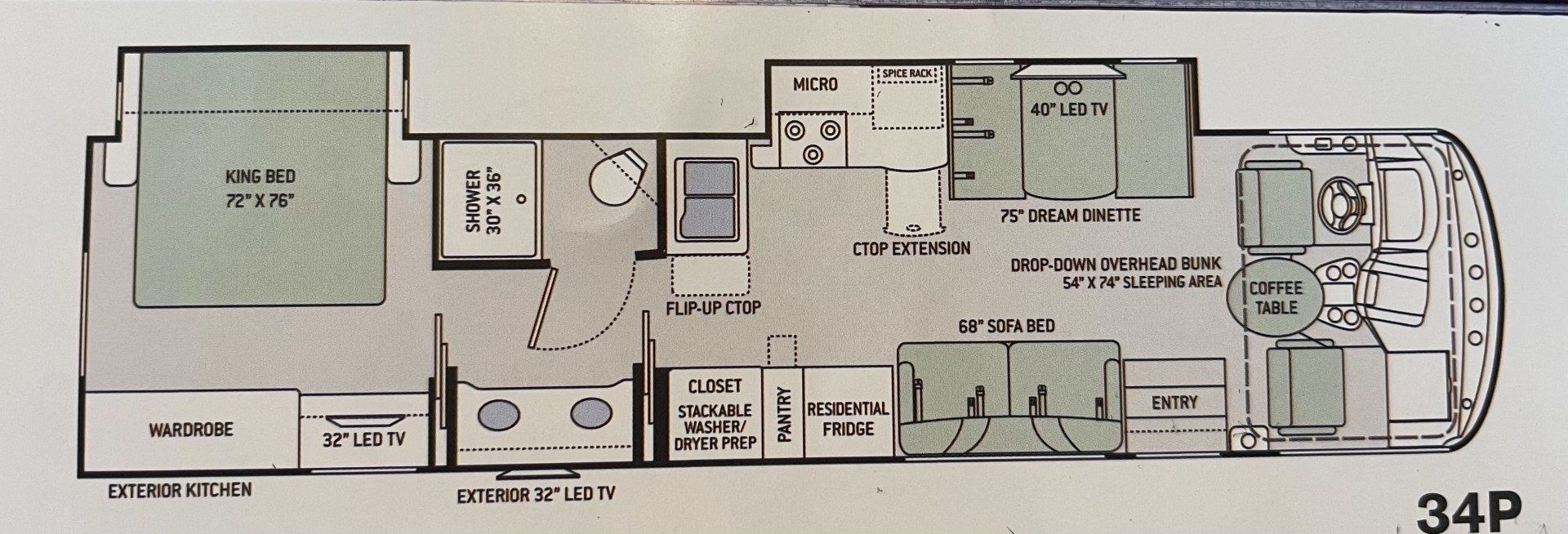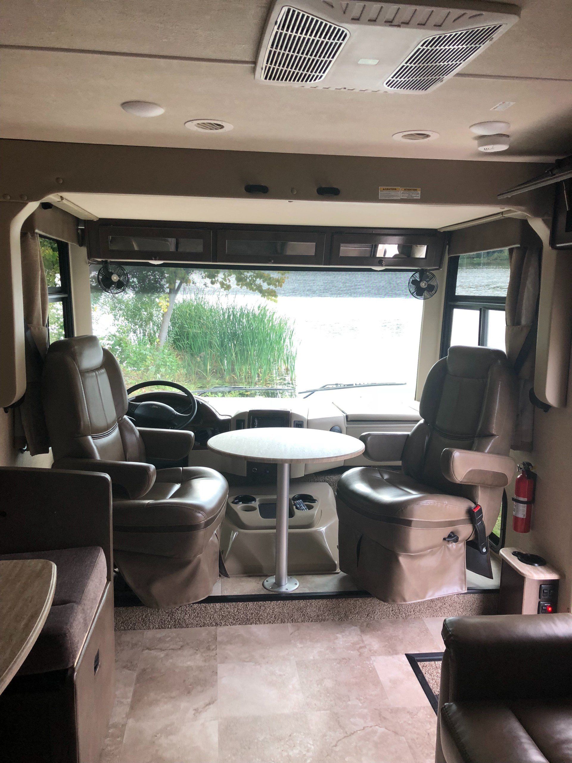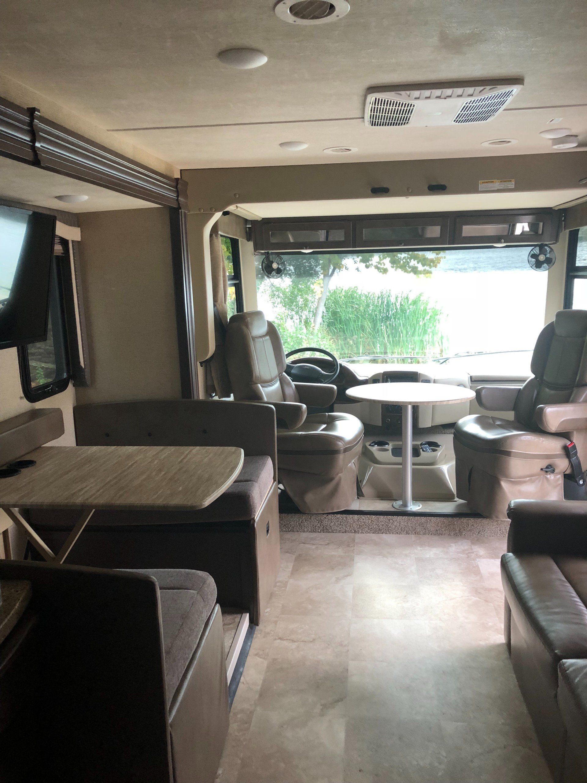 Our Thor Motor Coach is perfectly suited to your next adventure. As a small company, our rates are very competitive. Our equipment is easy to use, easy to drive, and it sleeps up to 10 people. It comes equipped with an indoor and an outdoor kitchen so you can cook near everyone else, wherever they are. The kitchen is fully equipped and easy to use plus the coach also has 4 TVs so you don’t have to share with the kids; there is a Bluetooth radio system with exterior speakers so you can keep listening to the music you love, and the RV is equipped with a 50-amp generator to power all your needs not to mention air conditioning, a shower, a washer and dryer, and other amenities as well. We also have a Class A motor Coach!